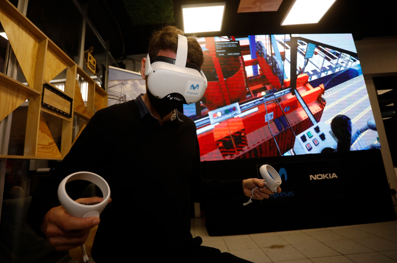 En la actividad también se realizó una demostración basada en Realidad Virtual Inmersiva conectada al espectro experimental 5G del Campus, donde se simula un embarque de carga en el Puerto de Valparaíso y virtualiza imágenes en 360° en tiempo real, para así capacitar y entrenar a operadores de grúas STS y RTG con una experiencia realista.