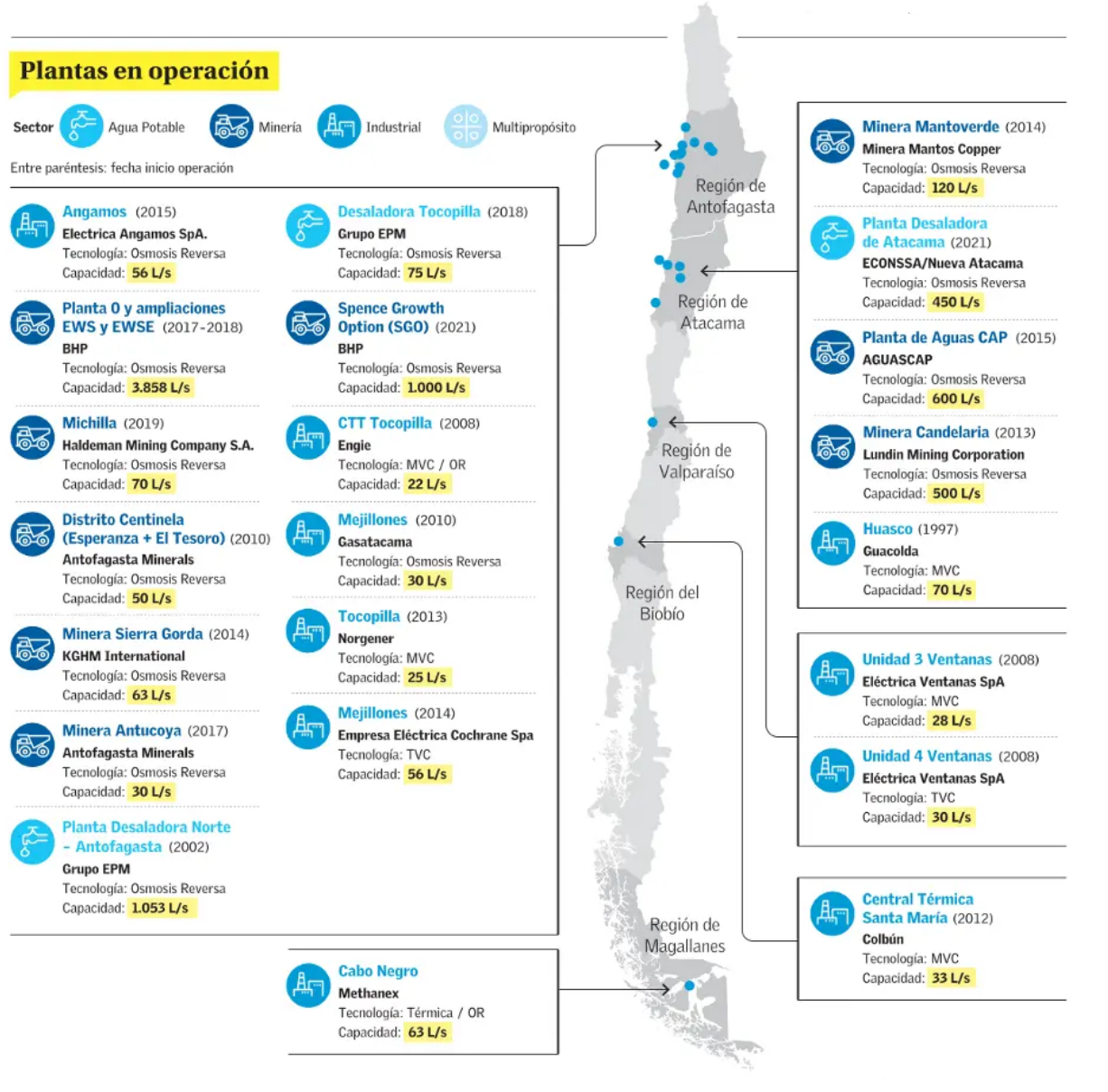 EL MERCURIO – La información reúne por primera vez un mapa del país y revela que la Región de Antofagasta lleva la delantera, con 13 plantas en operación.