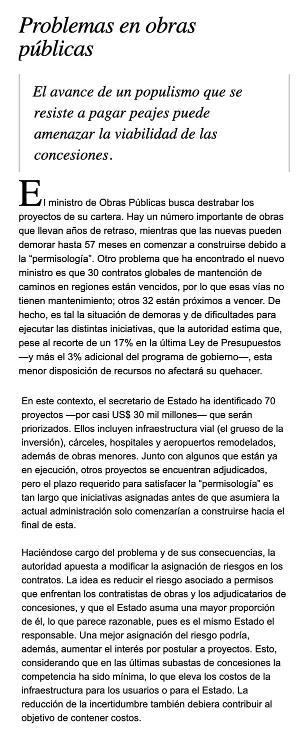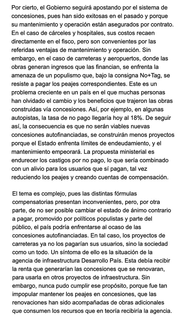 EL MERCURIO – El avance de un populismo que se resiste a pagar peajes puede amenazar la viabilidad de las concesiones