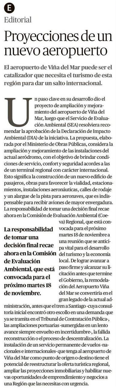 EL MERCURIO DE VALPARAÍSO – El aeropuerto de Viña del Mar puede ser el catalizador que necesita el turismo de esta región para dar un salto internacional.