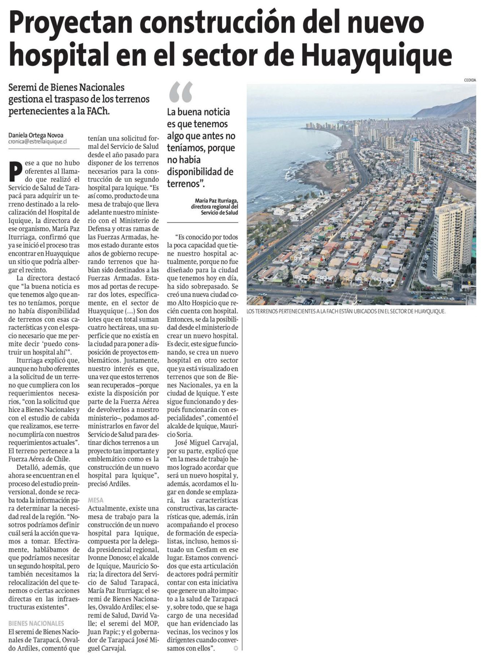 EL ESTRELLA DE IQUIQUE – Seremi de Bienes Nacionales gestiona el traspaso de los terrenos pertenecientes a la FACh.
