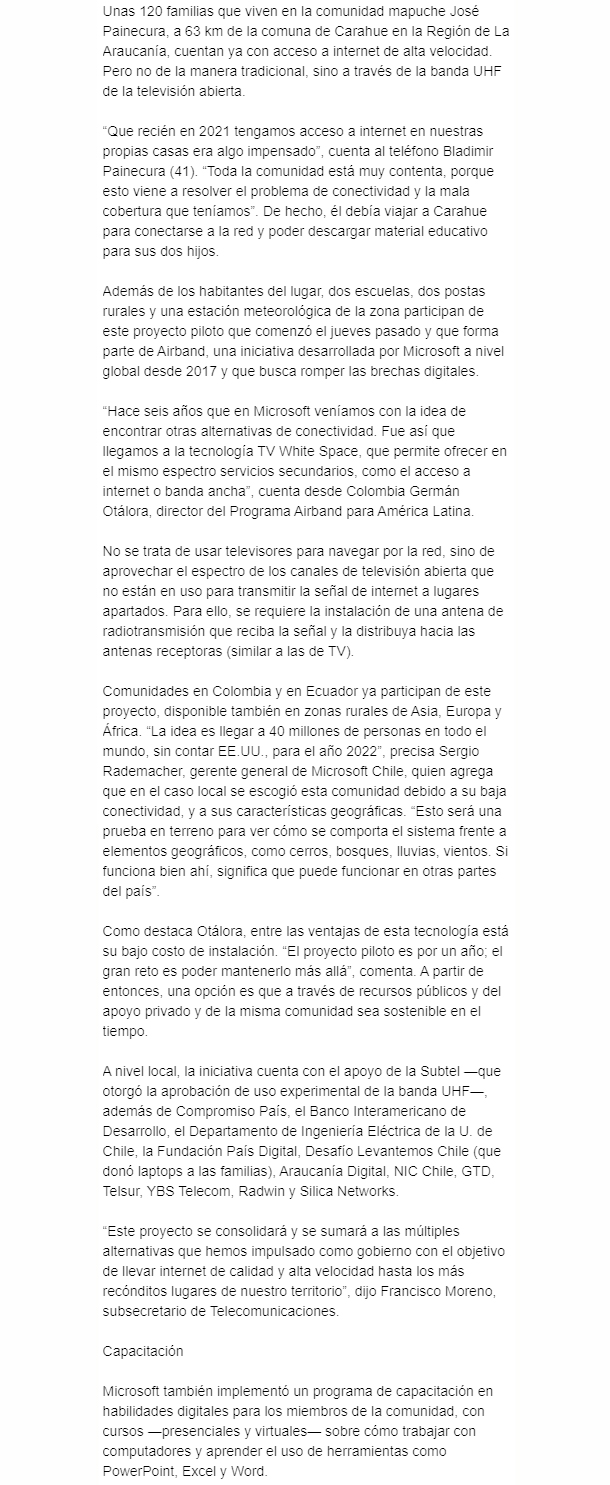 EL MERCURIO – Debido a su instalación de bajo costo, permite cerrar brechas digitales en zonas apartadas.