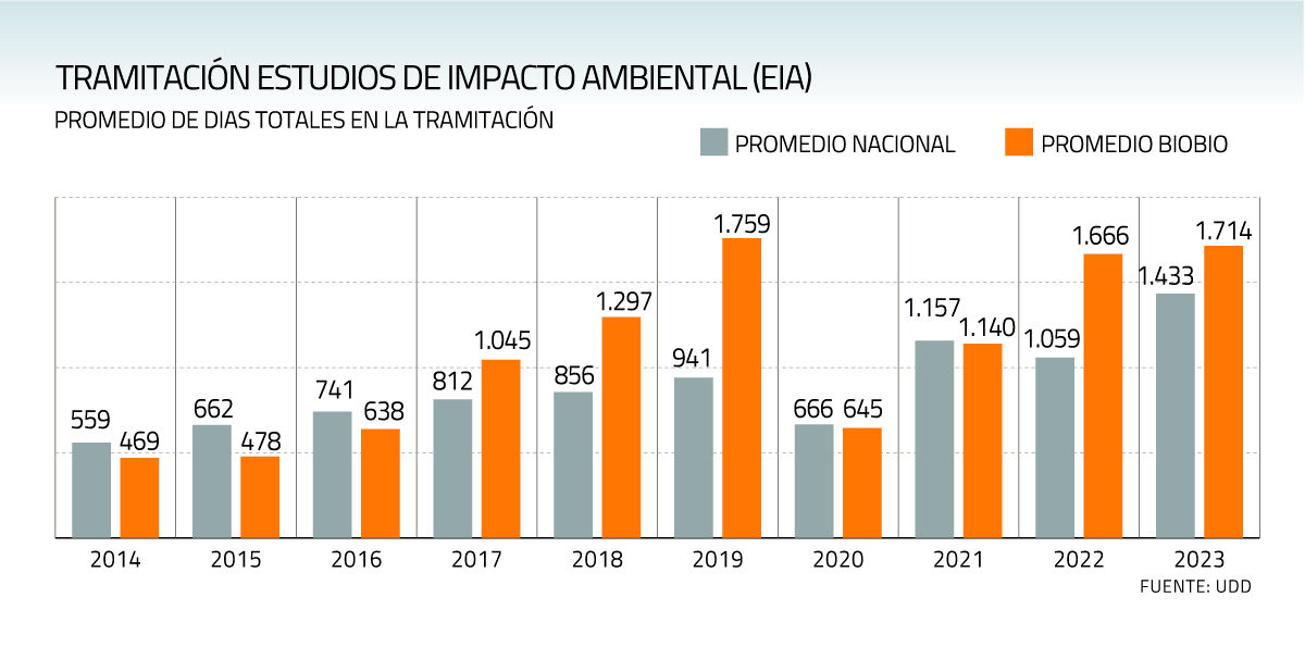 DIARIO FINANCIERO – El término anticipado del proyecto de tierras raras de Penco -que considera en la primera etapa US$ 130 millones de inversión- fue el detonante para que la Universidad del Desarrollo indagara qué está pasando con la evaluación ambiental de los proyectos en la Región del Biobío. El análisis reveló que los plazos de tramitación en 2022 superaron en casi dos años el promedio nacional, sumando 1.666 días, mientras que a nivel nacional el proceso duró 1.059 días.