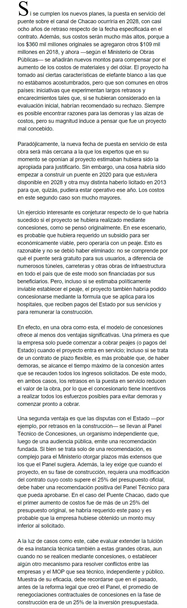 EL MERCURIO – El modelo de concesiones hubiera ofrecido incentivos para disminuir los retrasos y un mecanismo independiente para evaluar las alzas de costos