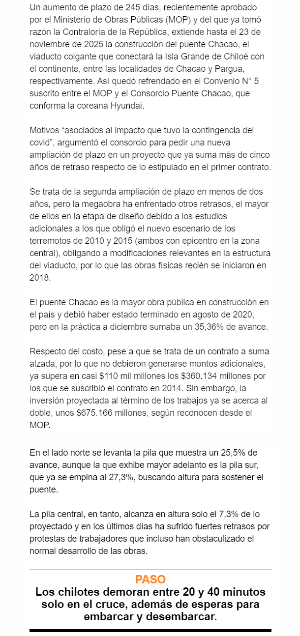 EL MERCURIO – Contraloría tomó razón de nuevo plazo y obras se extenderán hasta fines de 2025.