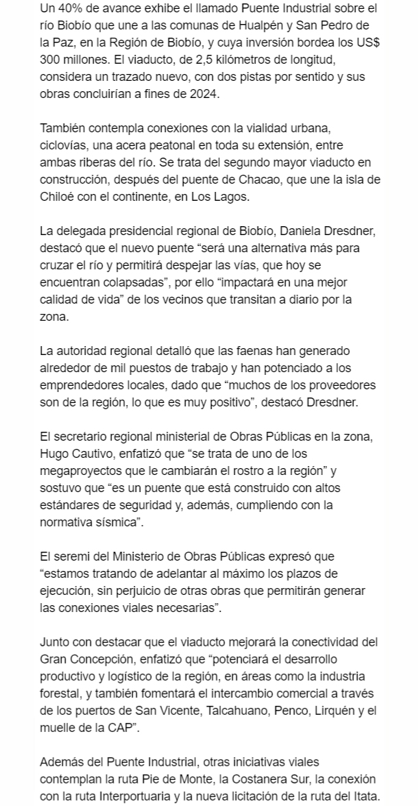EL MERCURIO – Viaducto, de dos pistas por calzada, incluye ciclovías y acera peatonal.
