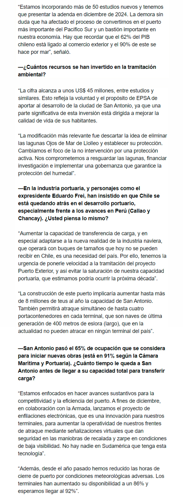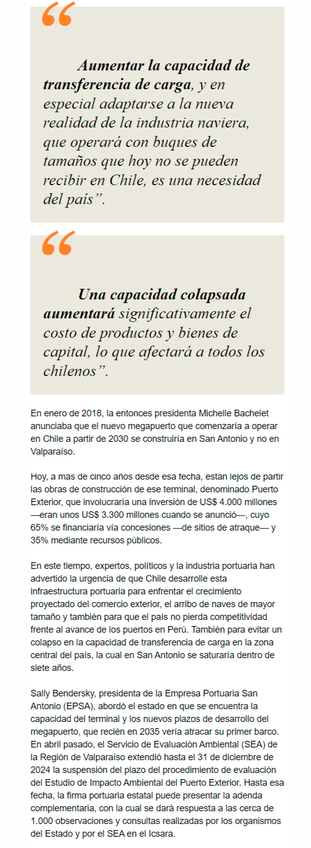 EL MERCURIO – Sally Bendersky, presidenta de EPSA, aborda la necesidad de avanzar en la construcción del megapuerto.