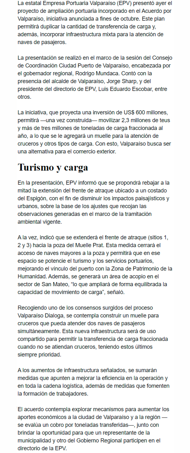 EL MERCURIO – Este plan permitirá duplicar la cantidad de transferencia de carga e incorporar infraestructura para la atención de cruceros.