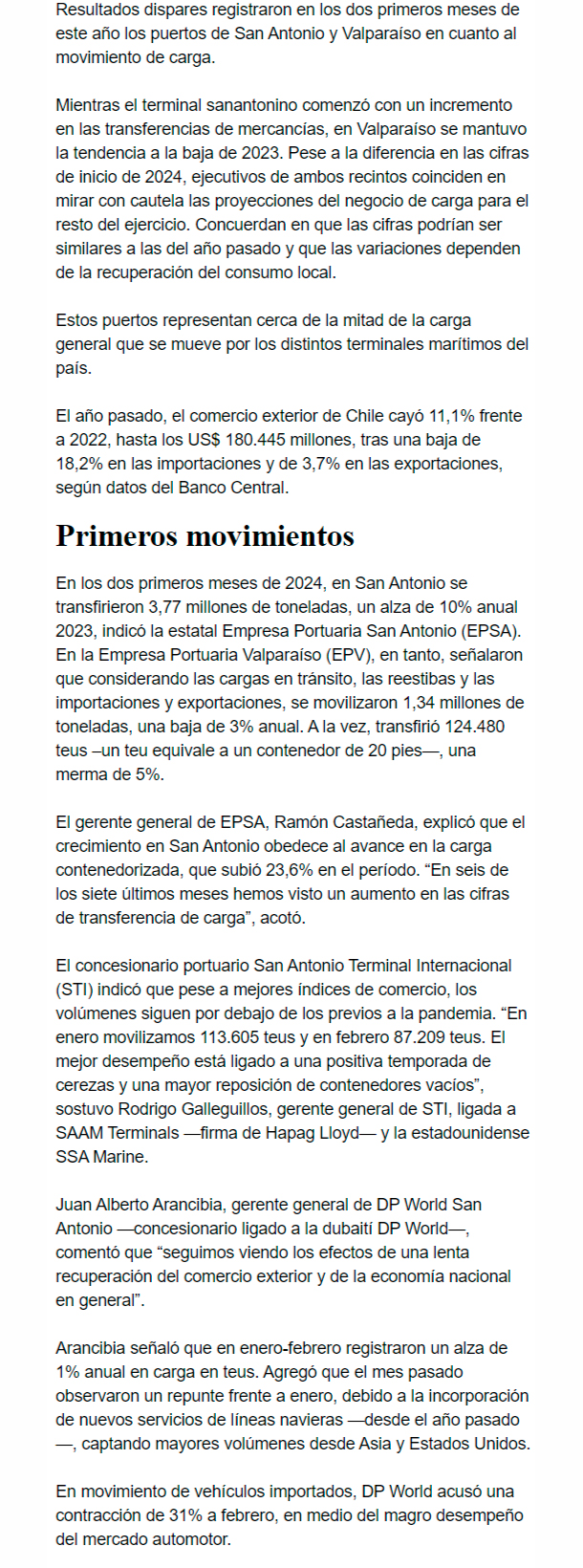 EL MERCURIO – La reactivación de la economía y del consumo son factores clave que están mirando en ambos terminales