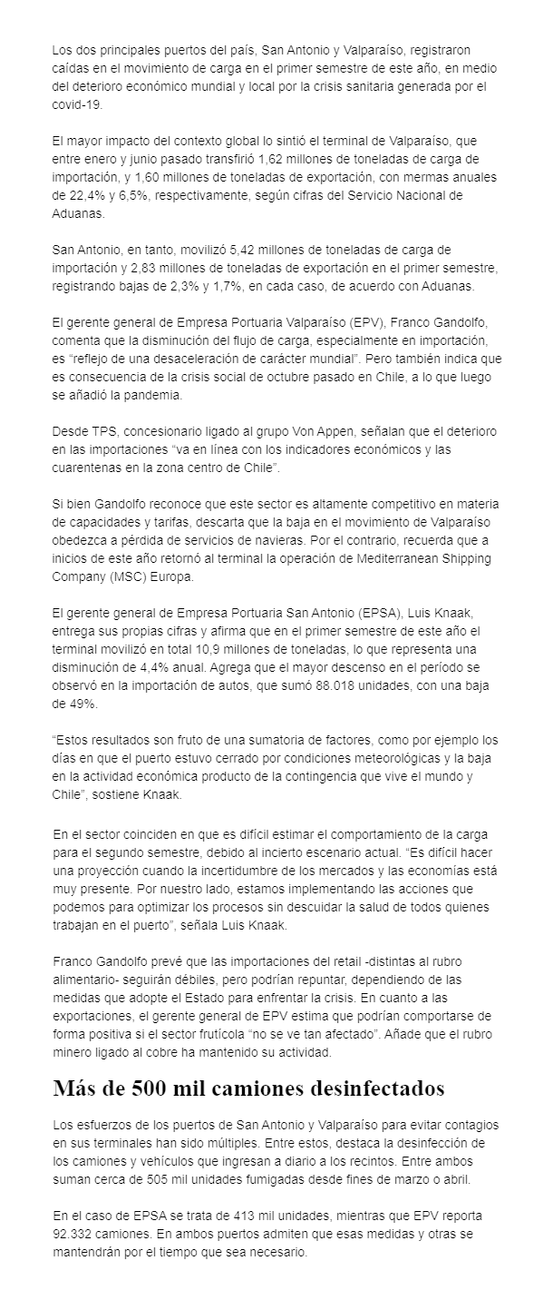 EL MERCURIO – San Antonio también registró retrocesos en el ingreso de productos al país, aunque en general estos fueron leves, salvo en los autos, que disminuyeron 49%.