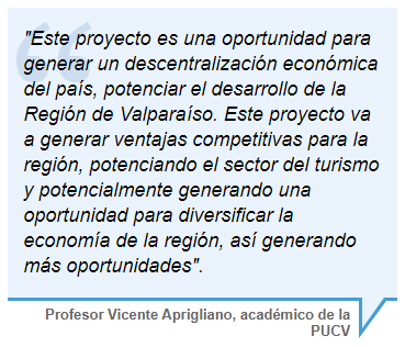 Pues en ámbitos de rentabilidad social, el académico menciona que “este proyecto es una oportunidad para generar una descentralización económica del país, potenciar el desarrollo de la Región de Valparaíso. Este proyecto va a generar ventajas competitivas para la región, potenciando el sector del turismo y potencialmente generando una oportunidad para diversificar la economía de la región, así generando más oportunidades. Además de promover un desarrollo más sustentable para la región, en la dimensión ambiental, social y económica”.