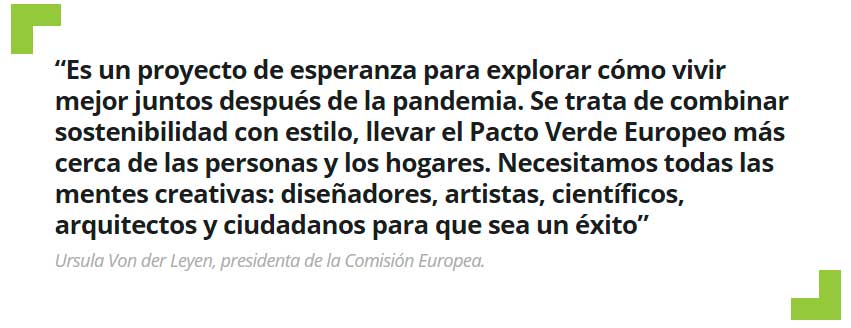 Esa es la apuesta de la presidenta de la Comisión Europea, Ursula von der Leyen, quien lanzó esta iniciativa a mediados de enero para movilizar a arquitectos, artistas, empresarios e instituciones con el fin de promover una arquitectura más sostenible y con conciencia ambiental, que no solo sirva a los fines del Pacto Verde europeo sino también a la reconstrucción de ciudades más resilientes y enfocadas en las personas tras la crisis de la pandemia por Covid-19.
