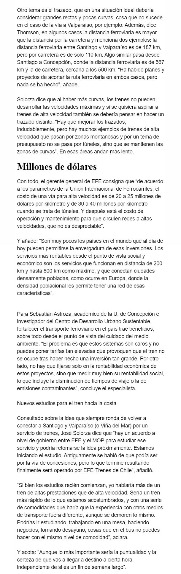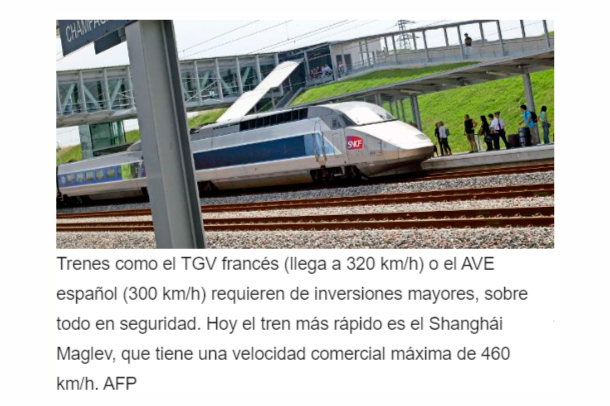 EL MERCURIO – A propósito de las nuevas máquinas que pueden circular a 160 km/h Santiago y Chillán.
