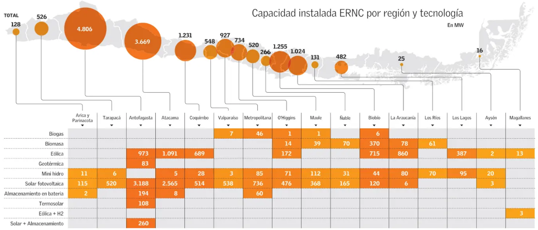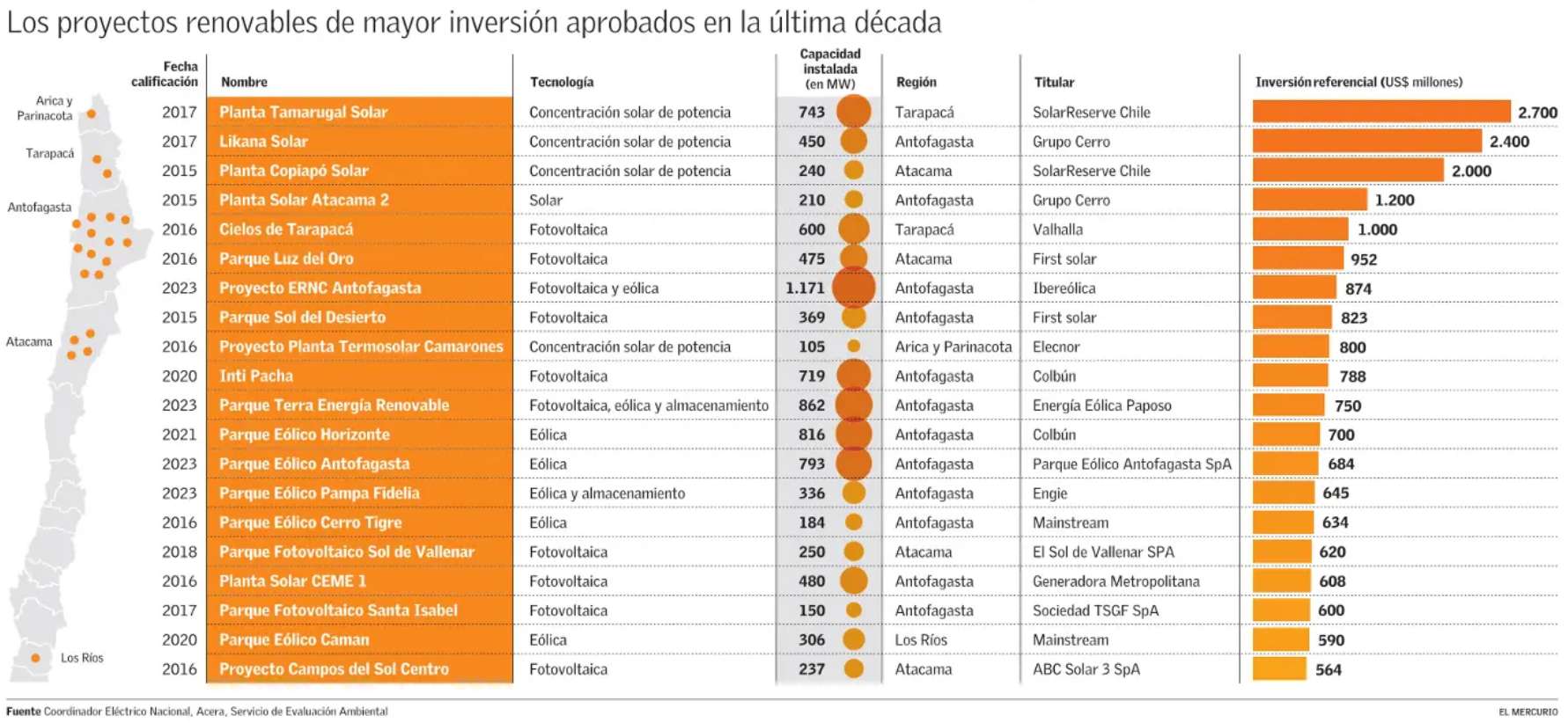 EL MERCURIO – Las plantas se ubican principalmente en la Región de Antofagasta, pero están distribuidas en todo Chile, incluso Magallanes. Ya superan los 15 mil MW