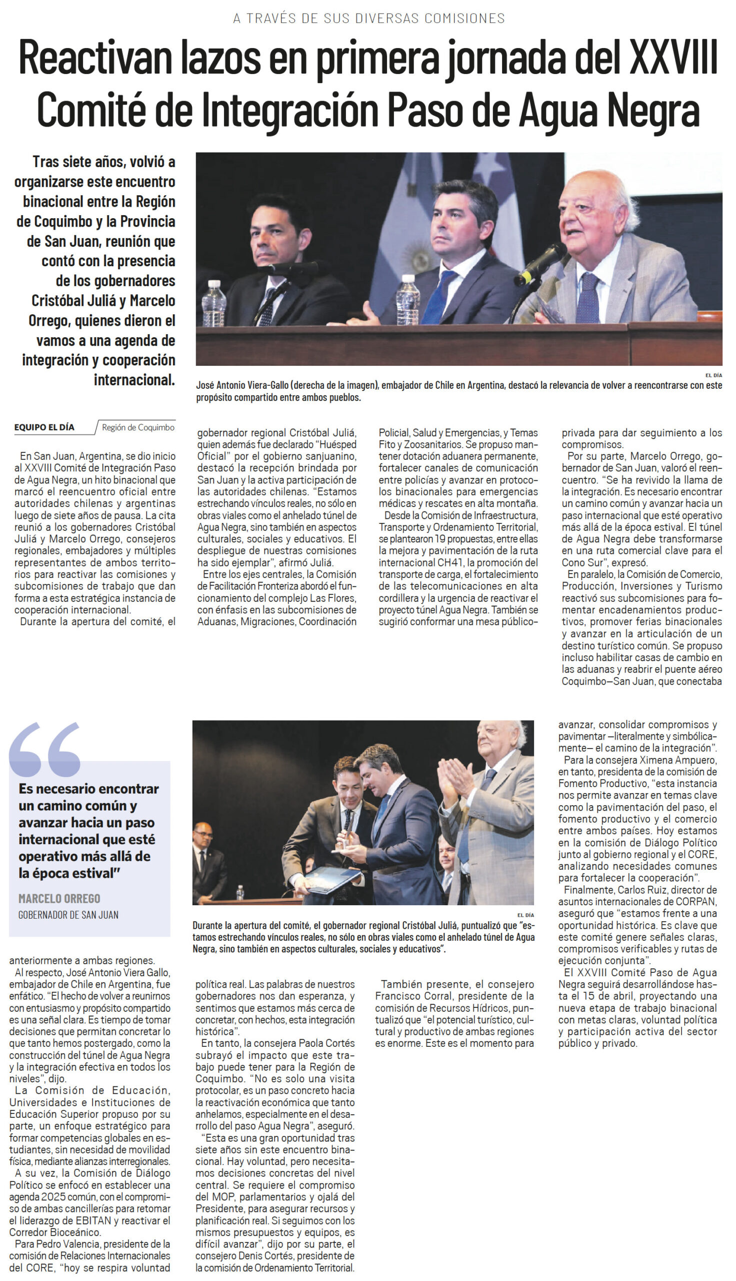 EL DÍA – Tras siete años, volvió a organizarse este encuentro binacional entre la Región de Coquimbo y la Provincia de San Juan.