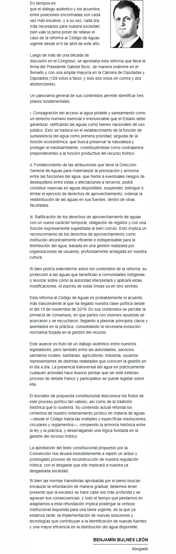EL MERCURIO – La aprobación del texto constitucional propuesto por la Convención nos llevará ineludiblemente a repetir un arduo y prolongado proceso de reconstrucción de nuestra regulación hídrica.