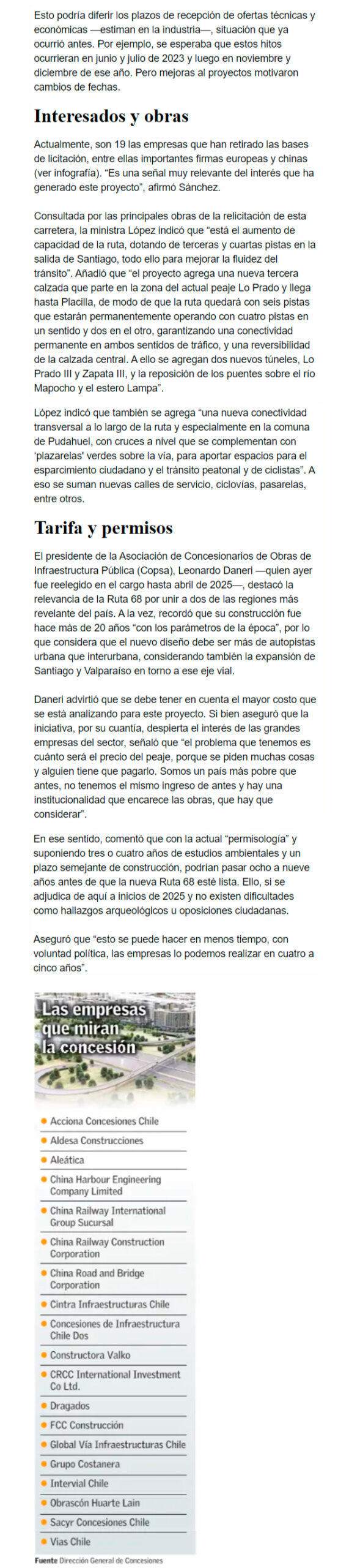 EL MERCURIO – El MOP y Hacienda están elevando sobre los US$1.200 millones la inversión prevista, lo que diferiría las fechas de recepción de ofertas