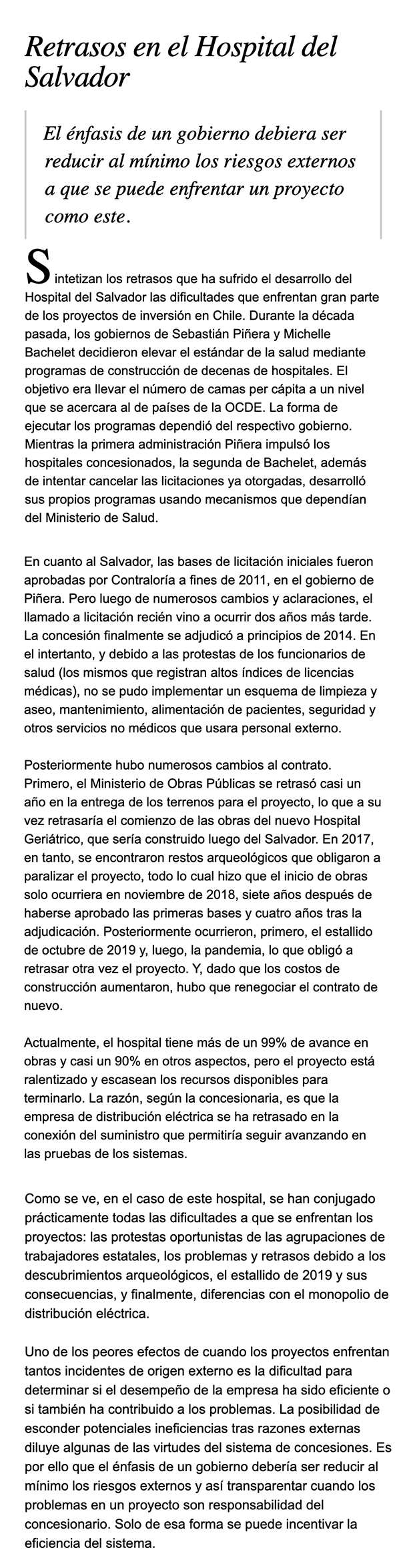 EL MERCURIO – El énfasis de un gobierno debiera ser reducir al mínimo los riesgos externos a que se puede enfrentar un proyecto como este.