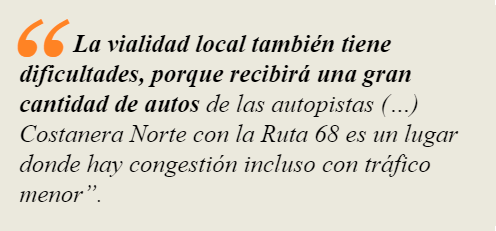 “La vialidad local también tiene dificultades, porque recibirá una gran cantidad de autos de las autopistas y la capacidad no es suficiente, en especial en los enlaces. Por ejemplo, Costanera Norte con la Ruta 68 a Valparaíso, es un lugar donde hay congestión incluso con tráfico menor, y en ese enlace se juntan autos de la zona de Pajaritos. Ahí gestionaremos, y hay que tener un acceso más amplio con medidas como la puesta de conos y vigilancia de Carabineros”, sostiene.