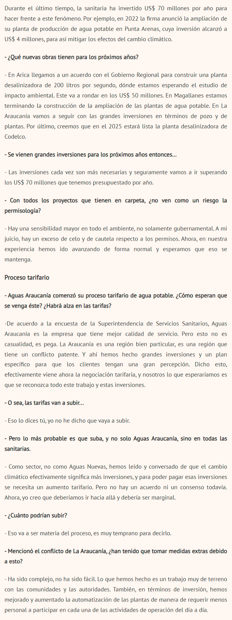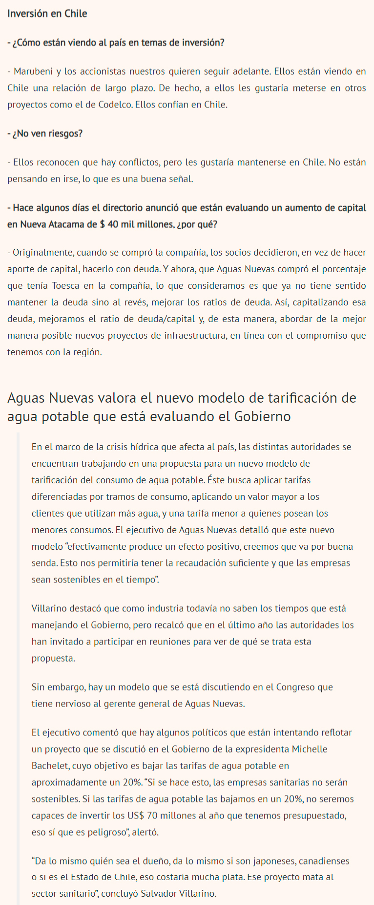DIARIO FINANCIERO – La empresa sanitaria tiene presupuestado invertir en el país US$ 70 millones por año, valor que se puede ir subiendo con el paso del tiempo