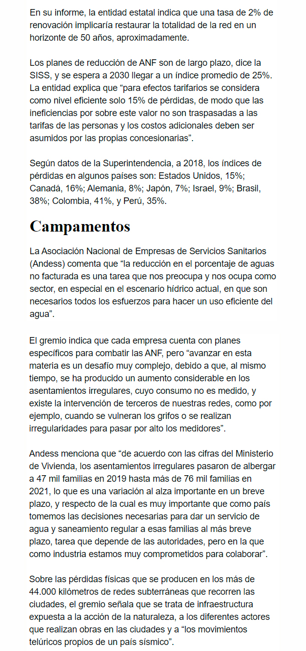 EL MERCURIO – Tema preocupa al regulador y a las empresas, especialmente por la escasez del recurso ante la sequía.