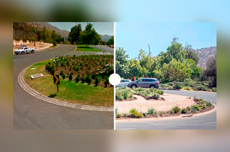 Las iniciativas de Lo Barnechea van en la misma línea. La rotonda Los Trapenses es ejemplo de esto, tras la reducción de la superficie destinada al pasto y la inclusión de plantas con menor demanda hídrica.