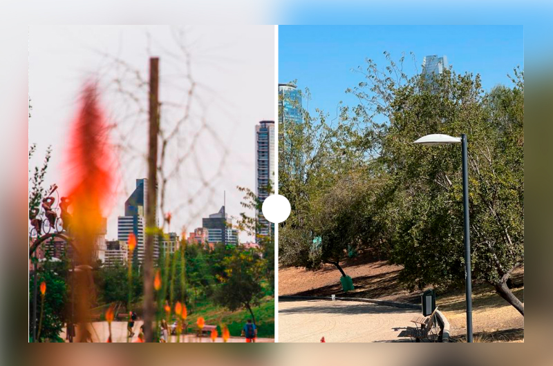 Mientras, en Vitacura, la municipalidad se encuentra en proceso de reemplazo de dos hectáreas de pasto por especies de bajo consumo en el Parque Bicentenario, que aportan biodiversidad y tienen un alto valor ornamental. Por eso, ahora se está dejando secar el pasto para reemplazarlo. También serán incorporadas especies arbóreas nativas como espinos, quillayes y algarrobos, que aportarán sombra.