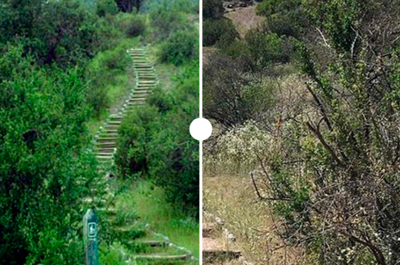 En el caso de La Reina, uno de los sectores que se han visto fuertemente afectados por la sequía son los senderos del Parque Mahuida. En el 2006, el paisaje estaba muy vivo: pasto, árboles y arbustos de distintos tipos eran parte del panorama. Pero la sequía ha pegado fuerte en esta área, provocando que se secara paulatinamente.