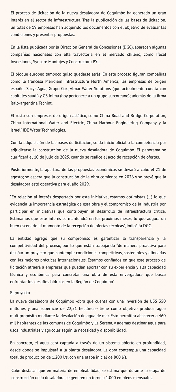 DIARIO FINANCIERO – En la lista figuran compañías nacionales, asiáticas y europeas. La apertura de ofertas está prevista para el 10 de julio