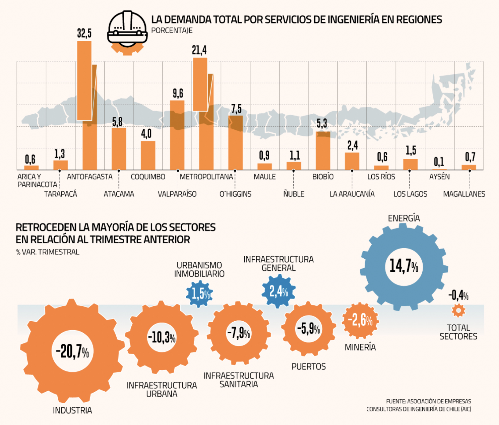 A nivel regional, el 64% de la demanda total por servicios de ingeniería se concentra en Antofagasta (32,5%),