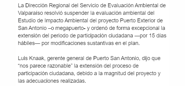 EL MERCURIO – Ordenó de forma excepcional la extensión del periodo de participación ciudadana, por 15 días hábiles, por modificaciones sustantivas en el plan.