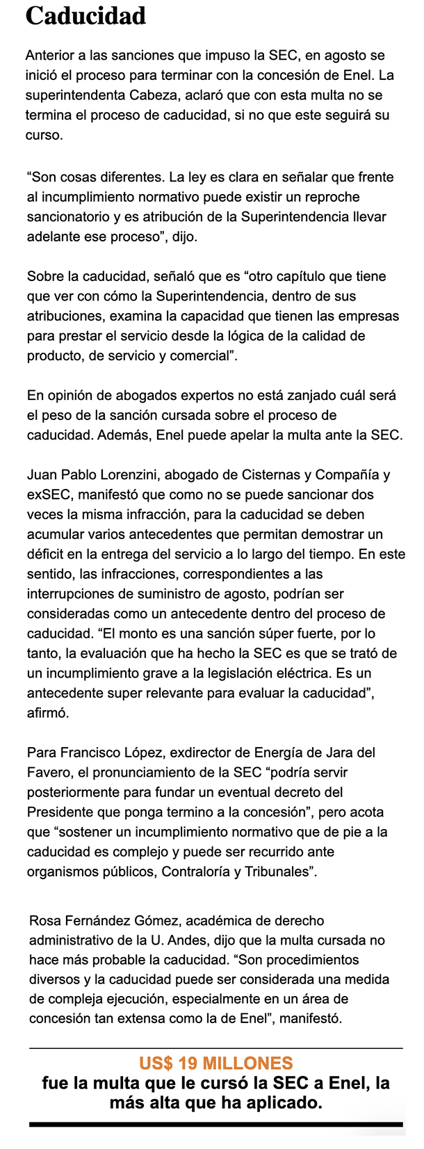 EL MERCURIO – La superintendenta Cabeza aseguró que son procesos separados, pero los abogados dicen que podría servir como antecedente para terminar con la concesión