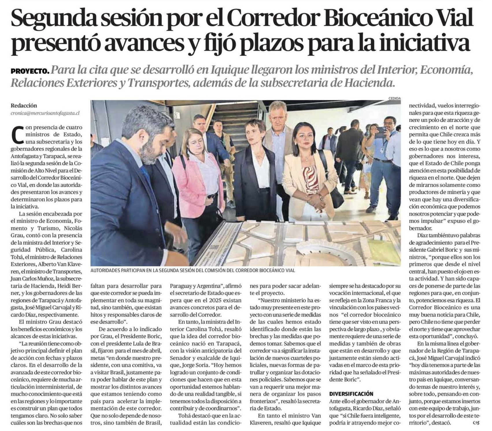 EL MERCURIO DE CALAMA – Para la cita que se desarrolló en Iquique llegaron los ministros del Interior, Economía, Relaciones Exteriores y Transportes, además de la subsecretaria de Hacienda