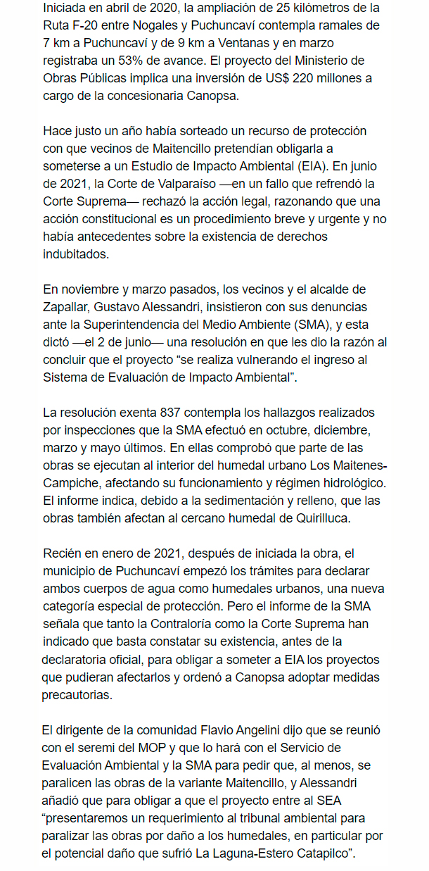 EL MERCURIO – Acoge denuncia de vecinos y alcalde de Zapallar y afirma que es necesario un EIA.