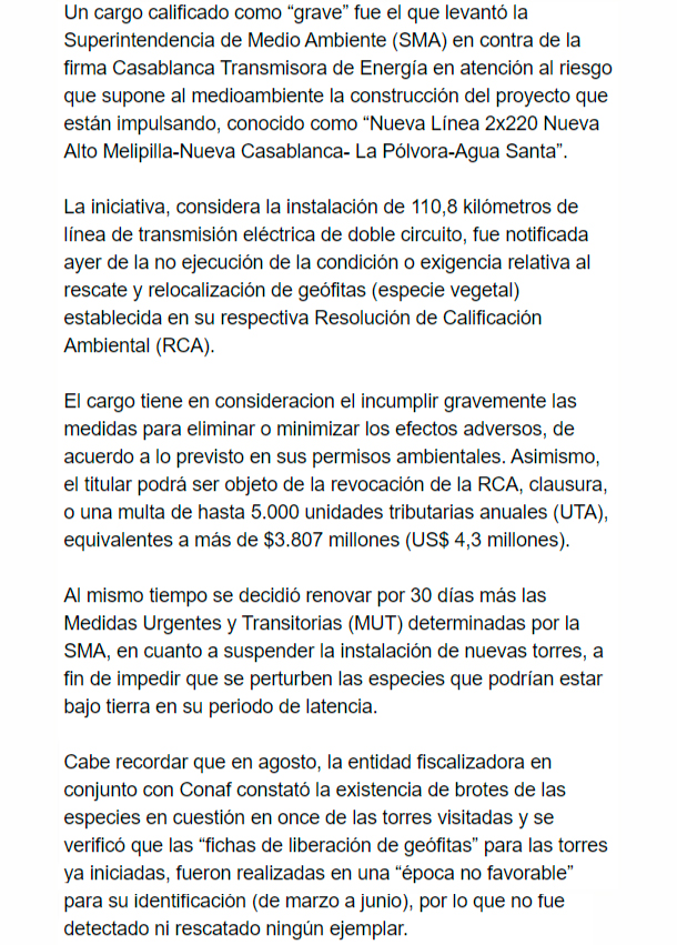 EL MERCURIO – Esto en atención al riesgo que supone al medioambiente la construcción del proyecto.