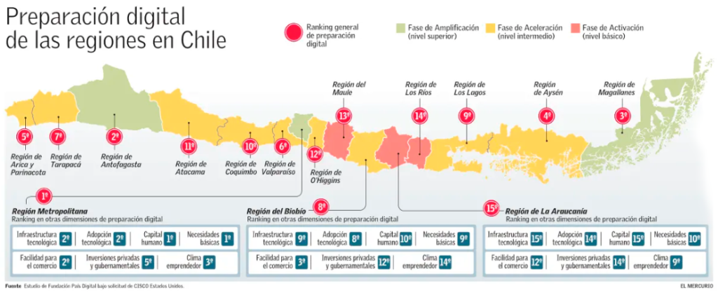 Solo tres regiones de Chile están preparadas digitalmente para enfrentar los desafíos de la transformación tecnológica