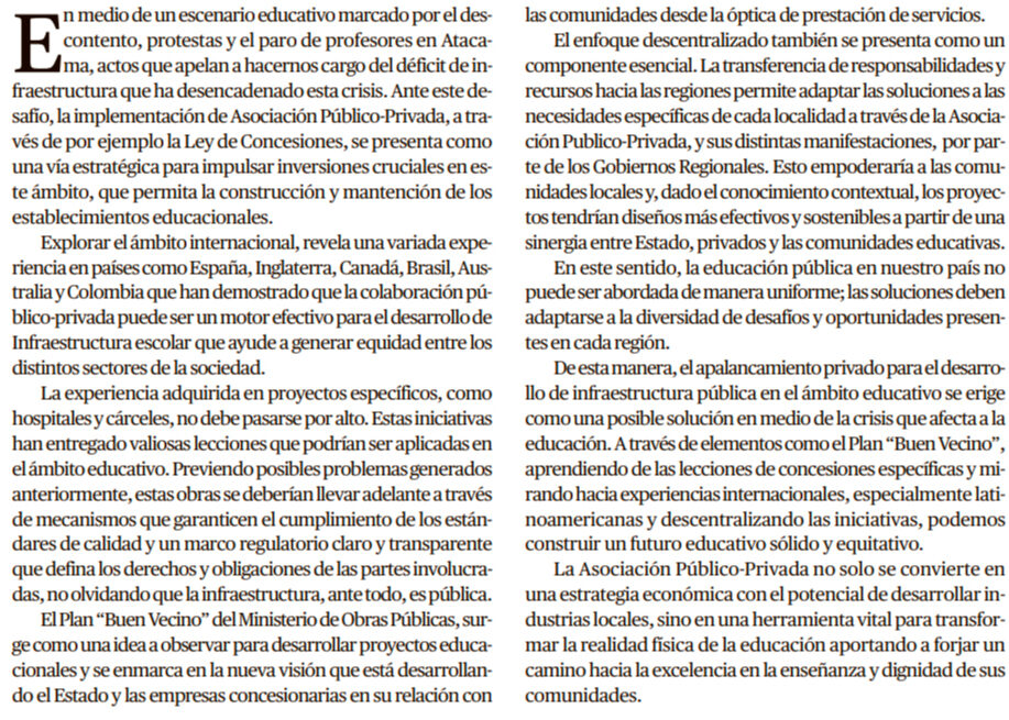 CRÓNICA CHILLÁN – La APP no solo se convierte en una estrategia económica con el potencial de desarrollar industrias locales, sino una herramienta vital para transformar la realidad física de la educación.