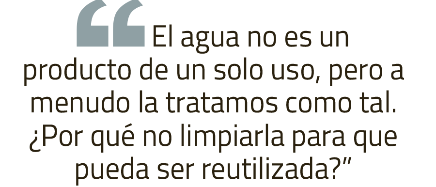 El agua no es un producto de un solo uso, pero a menudo la tratamos como tal. ¿Por qué no limpiarla para que pueda ser reutilizada? Eso probablemente es más limpio que bombear agua “nueva” desde los ríos, pozos y manantiales. Existen múltiples métodos e intensidades para reciclar el agua que conducen a agua potable (la más limpia) o para riego (menos limpia). Los agricultores podrían usarla para irrigar sus tierras y los gobiernos locales para regar sus áreas verdes.