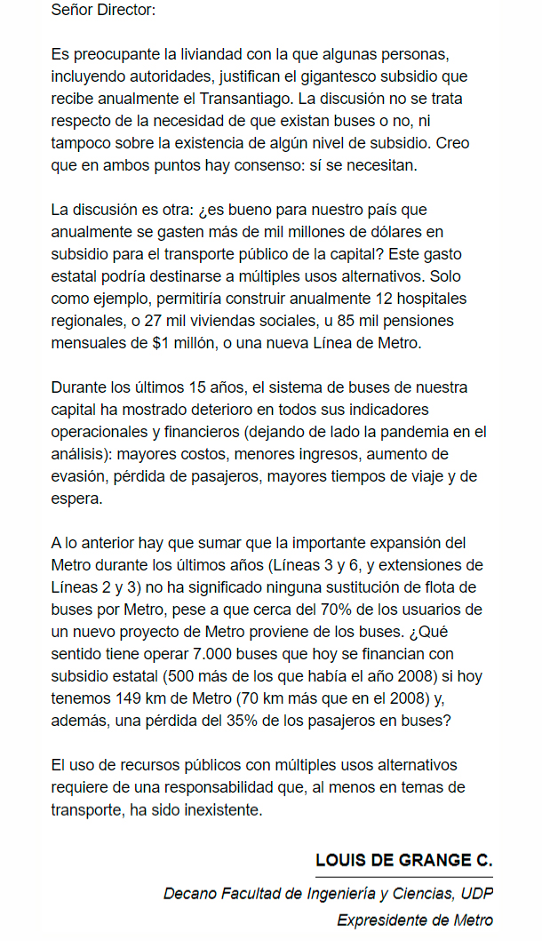 EL MERCURIO – El uso de recursos públicos con múltiples usos alternativos requiere de una responsabilidad que, al menos en temas de transportes, ha sido inexistente