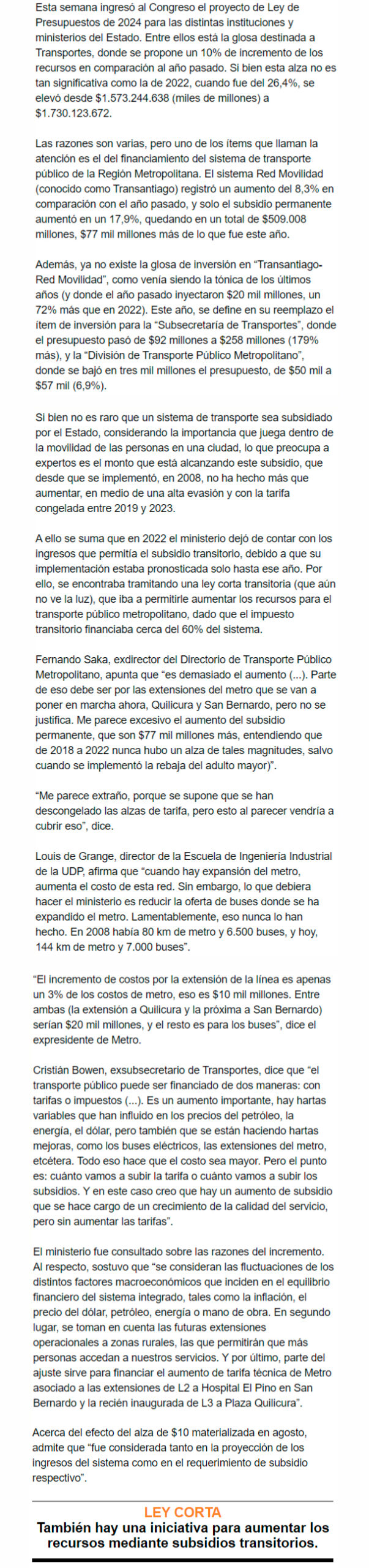 EL MERCURIO – Son $77 mil millones más lo que se agregaron a la glosa del Transantiago, que financia, entre otras cosas, las alzas de tarifa que no se han materializado.