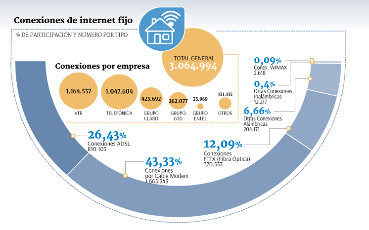 El espectro asignado -que en caso de las cuatro primeras empresas alcanzó a 50 Mhz y en Entel a 100Mhz- se destinó para el desarrollo de internet fijo inalámbrico.