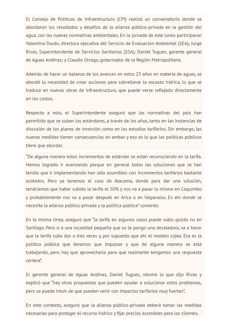 DIARIO FINANCIERO – Entidades analizaron los desafíos para los procesos de fijación tarifarios en una conversación sobre la gestión del agua y sus retos organizada por el CPI.