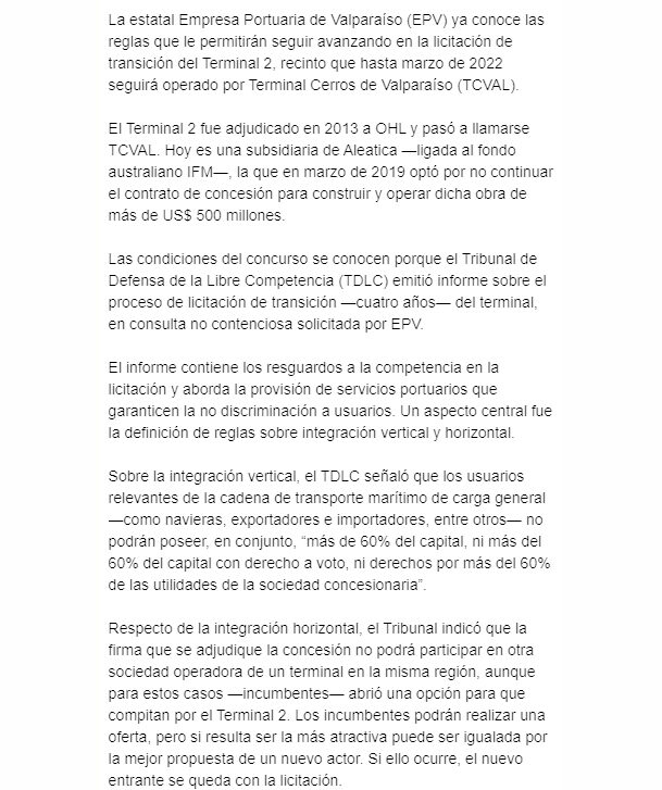 EL MERCURIO – Con esto sigue adelante concurso para reemplazar a actual operador, TCVAL.