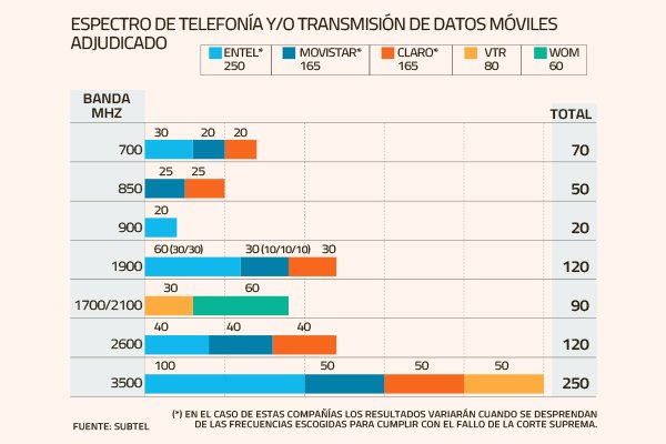 En el mediano plazo, la Subtel deberá velar porque existan al menos cuatro operadores con un mínimo de MHz cada uno en esa macrobanda, para después regir un máximo de 25% por operador.