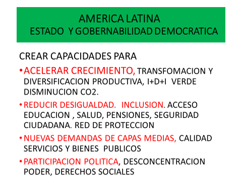 La nueva etapa de desarrollo productivo requerirá de un Estado más capaz, orientador y coordinador. Nuestro desarrollo futuro dependerá del conocimiento de las tecnologías y su aplicación, del espíritu de innovación y emprendimiento. Por esas razones, la ingeniería, en cuanto método de pensar y actuar, será demandada intensamente. Hasta ahora en América latina ha existido un excesivo predominio de economistas, de un pensamiento que solo privilegia los equilibrios macroeconómicos. No basta con los equilibrios macroeconómicos, son condición necesaria pero no suficiente. También, la lógica económica dominante delega al mercado la definición automática del rumbo y pregona un Estado mínimo. No es así ni en Estados Unidos, ni en Alemania, ni en Corea ni menos en China. No lo ha sido en la Unión Europea. Las decisiones estratégicas las adopta la sociedad y se impulsan desde el Estado. Y ello es más cierto que nunca hoy ante el cambio tecnológico acelerado. El que no sabe, el que no investiga, el que no tiene redes internacionales, el que no elige dónde quiere ser excelente, no llega ni alcanza meta alguna. Cada uno de nuestros países debe incrementar urgentemente su capacidad de investigación nacional en ciencia y tecnología.