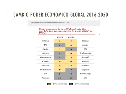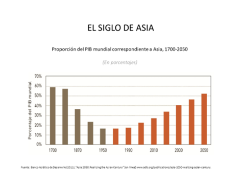 También es crucial el polo Asia-Pacífico Una política audaz debe abarcar desde la formación de personas, conocimiento de idiomas, infraestructura para la conectividad, puertos de gran escala, cable de fibra óptica que conecte América Latina con Asia. China va en camino de transformarse en la primera economía mundial, lleva a cabo los mayores planes de infraestructura, ha acelerado su inscripción de patentes, formación de científicos y proyectos de innovación en el área digital. En su escenario principal el Banco Asiático de Desarrollo aspira a que Asia recupere en 2050 la posición dominante que poseía en 1750. Sin embargo, el beneficio para América Latina no será automático. Será fructífero si cada país latinoamericano sabe hacia dónde ir, qué y cómo negociar con China. Este eje es complementario de una articulación de los países latinoamericanos. En conectividad energética, digital, de infraestructura de transporte. La Alianza del Pacifico es un vehículo potente.