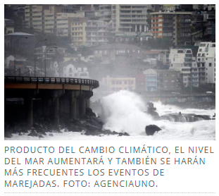 La información fue revelada por el estudio denominado “Determinación de los impactos del cambio climático en las costas de Chile”, encargado por el Ministerio de Medio Ambiente a un grupo de científicos de las universidades de Valparaíso, Playa Ancha, Católica, Católica de Valparaíso y Católica de Maule, además de los Centros de Investigación UV COSTAR y CIGIDEN.