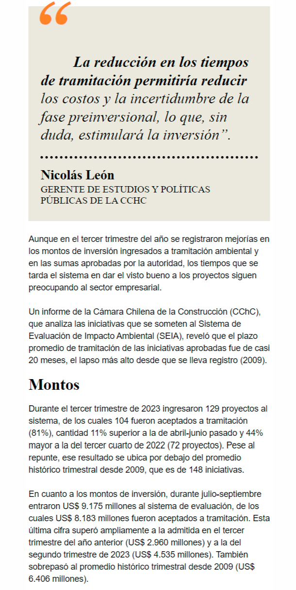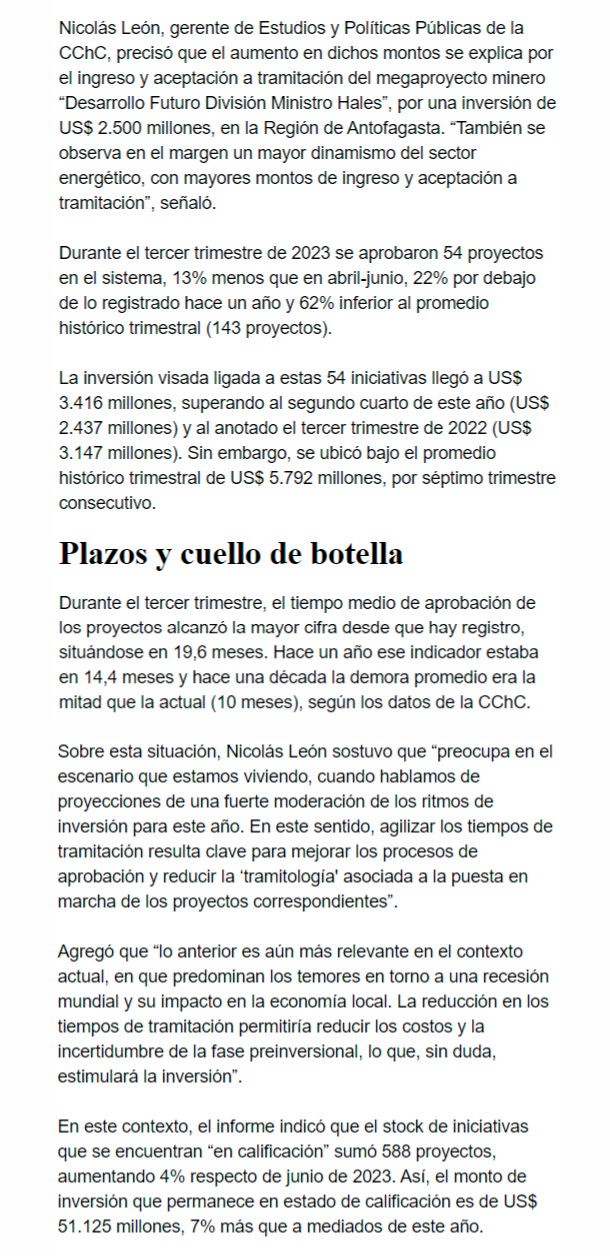 EL MERCURIO – Informe de la CChC advierte una leve alza en el monto de inversión aprobada, con US$ 3.416 millones, inferior al promedio histórico.
