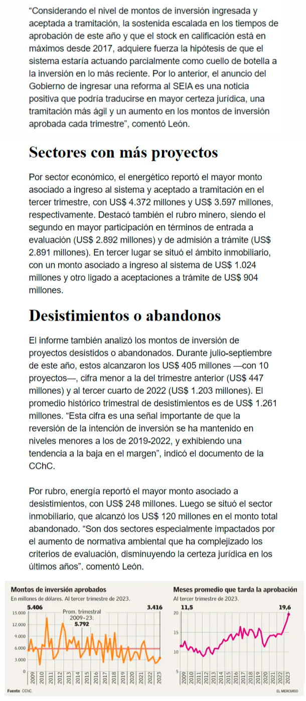 Fuente: El Mercurio, Miércoles 01 de Noviembre de 2023