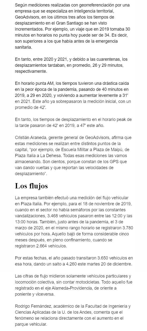 EL MERCURIO – Medición con georreferenciación en cientos de puntos entre 2019 y 2022, en hora punta tarde.